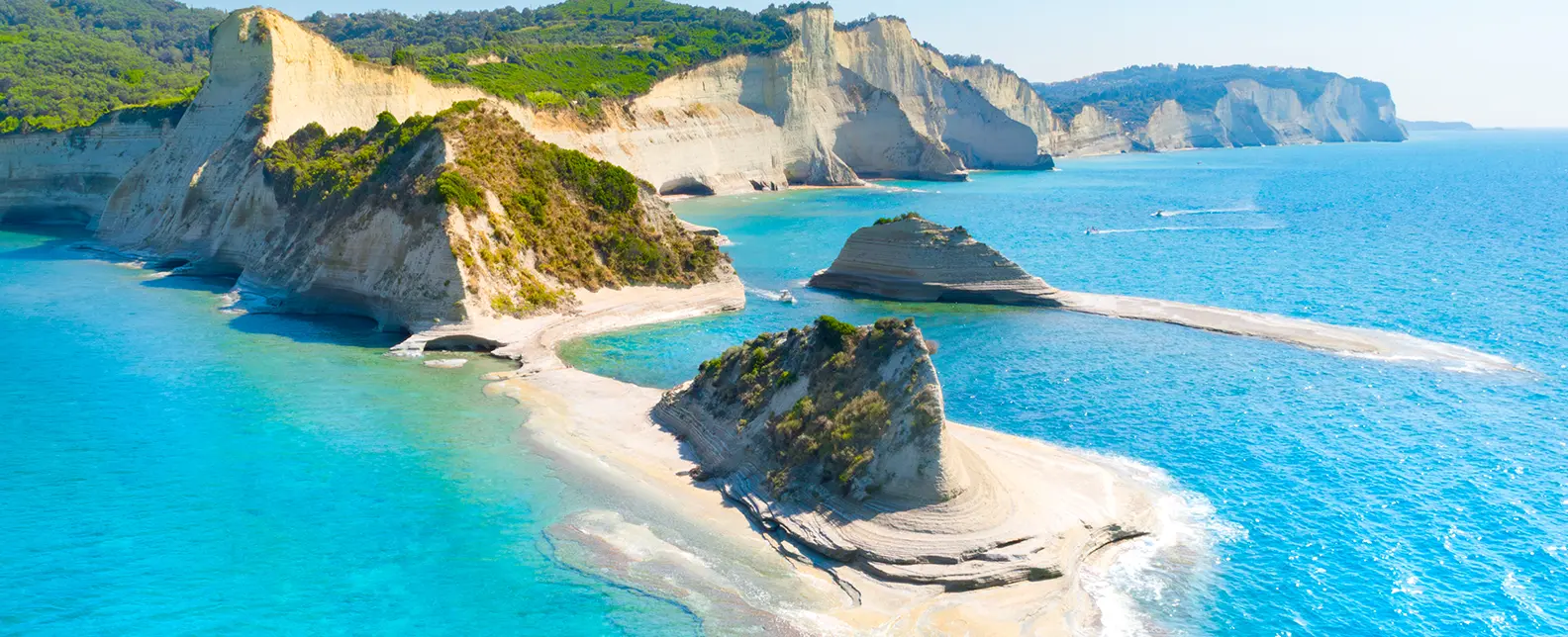 Last cruise down the rocky coast of Corfu. For a final swim, stop at Paleokastritsa, where Odysseus purportedly shipwrecked. Dock in Gouvia and toast your voyage with kumquat liqueur amid Venetian arcades of Corfu Town.